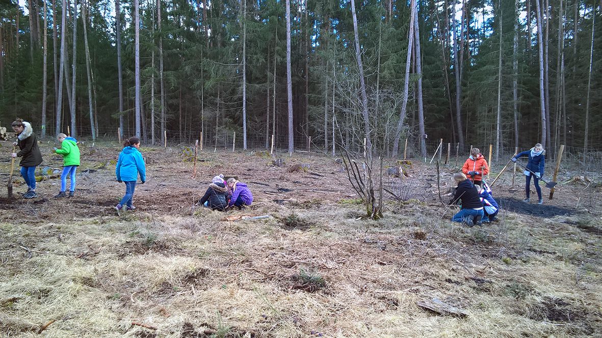 Die Kinder haben im Wald bei einer Wiederaufforstung nach Käferbefall mitgeholfen und viele von insgesamt 750 Bäumchen (Weißtannen, Buchen, Eichen und Esskastanien) gepflanzt.