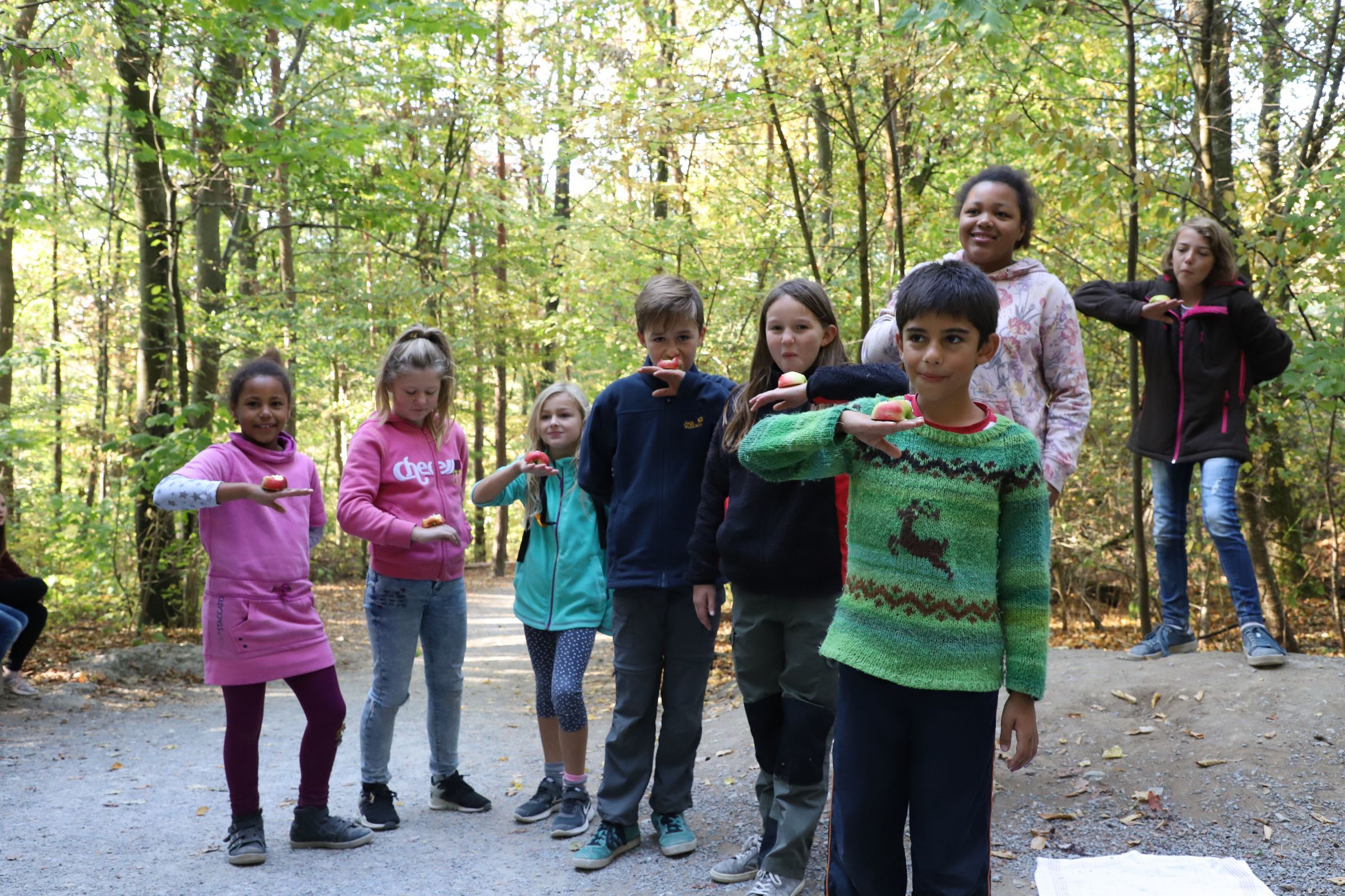 Die Kinder haben im Wald bei einer Wiederaufforstung nach Käferbefall mitgeholfen und viele von insgesamt 750 Bäumchen (Weißtannen, Buchen, Eichen und Esskastanien) gepflanzt.