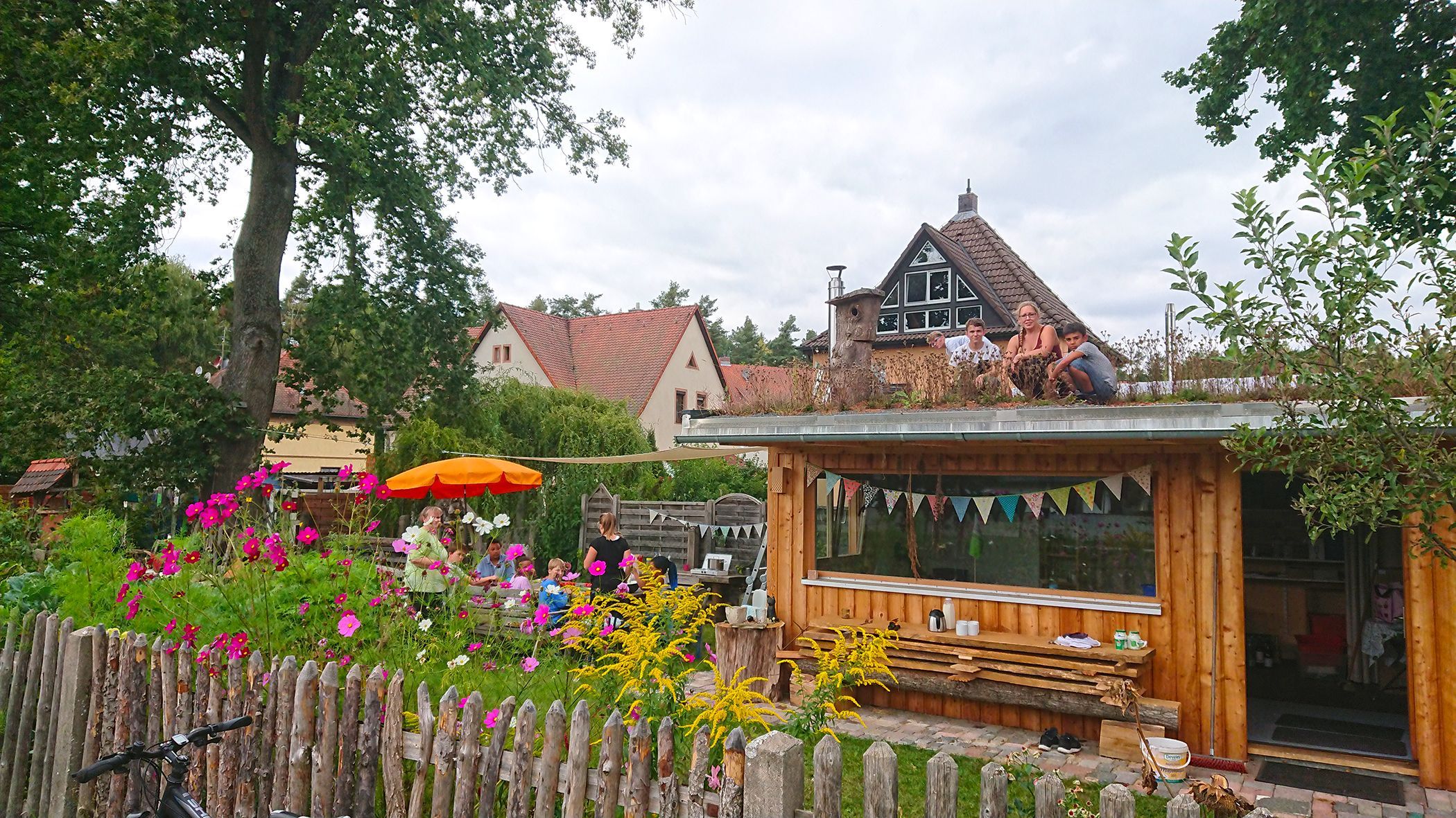 Auch unser begrüntes Dach ist zwischenzeitlich gut eingewachsen und viele Menschen, die am Alten Kanal spazieren gehen zeigen reges Interesse am Tun und Werkeln der Kinder und Jugendlichen.