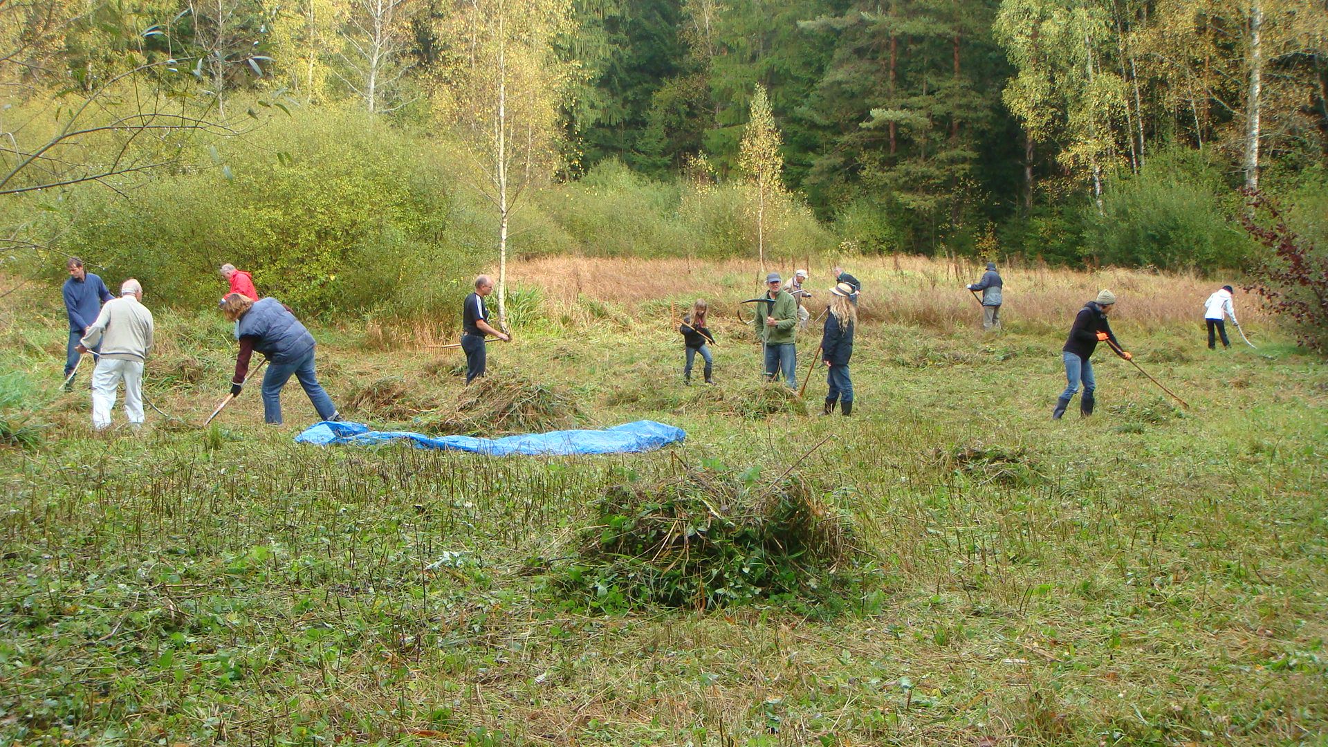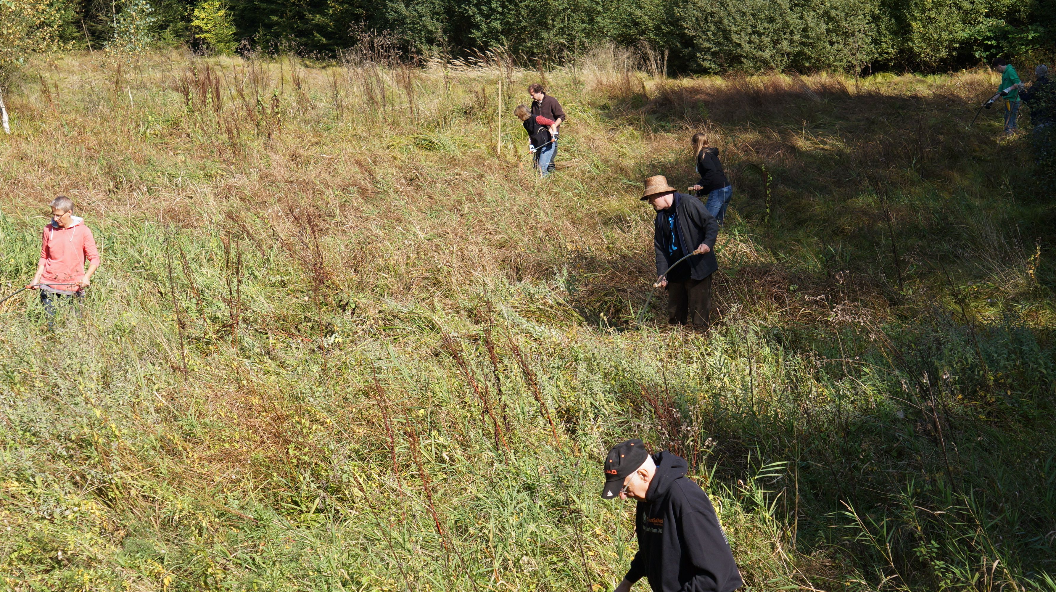 Deutlich sichtbar ist allerdings die vom Rand her einsetzende Verbuschung, die langfristig das Ende für diese wertvolle Feuchtwiese bedeuten würde. Deshalb, so der BN Vorsitzenden Pieger, ist es wichtig die Feuchtwiese zu pflegen, d.h. das Gras jährlich zu mähen und zu entfernen. Andernfalls breiten sich Disteln, Brennnesseln und Buschwerk immer weiter aus. Früher wurde diese Art der Biotoppflege vom Forst geleistet, aber seit Durchführung der Forstreform und der damit verbunden Vergrößerung der Forstreviere bleibt wenig Zeit für diese Art von Naturschutz.